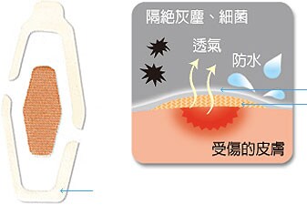 A1:3M™克淋濕防水透氣繃,防水效果佳,洗手或淋浴後均可不必更換,請按步驟正確黏貼,加速傷口癒合。